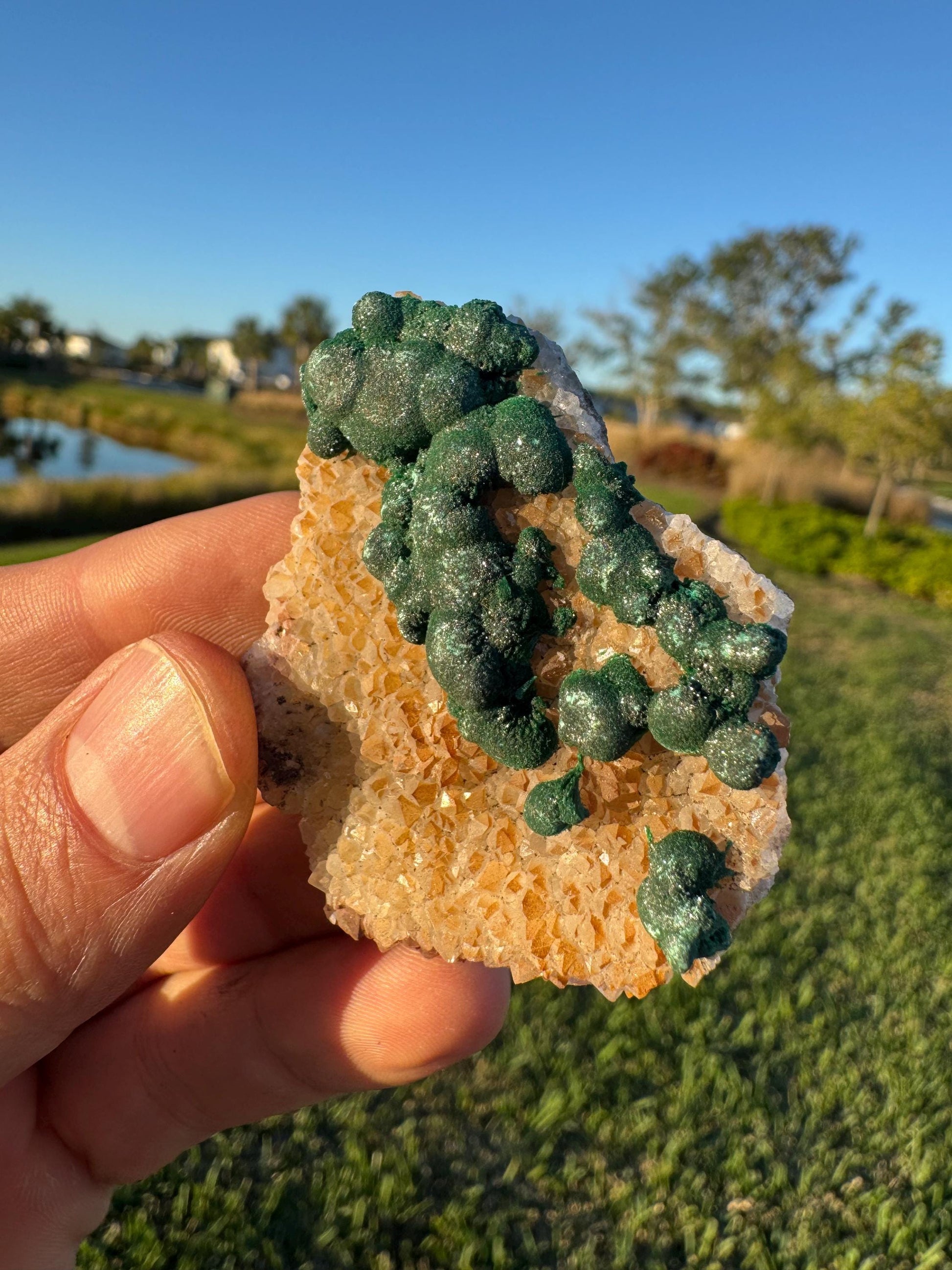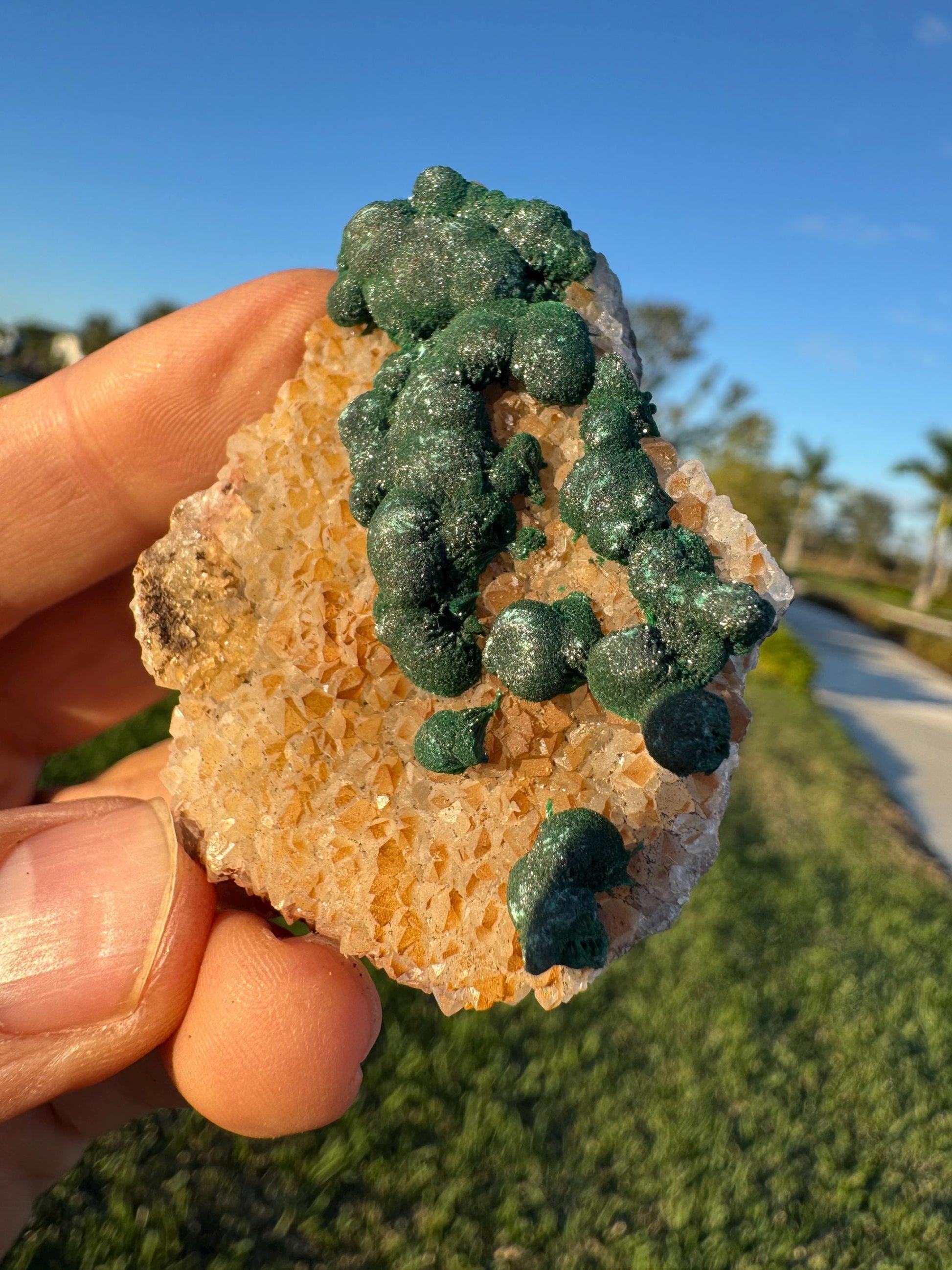 Barite with Botryoidal Malachite | Rare Congo Mineral | Flat Barite Crystals | Collector Specimen